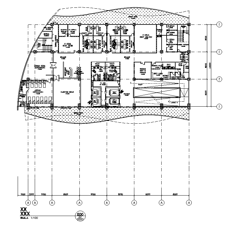 Roof plan of 70x110m mother & child hospital plan is given in this AutoCAD drawing model. Download now.