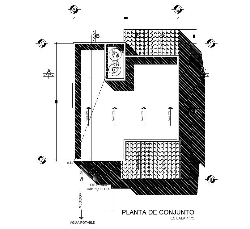 Roof layout of 8x10m house is given in this AutoCAD drawing model.Download the Autocad mdel.