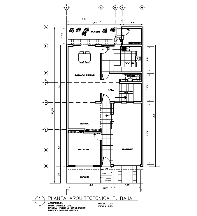 8x17m ground floor house plan is given in this AutoCAD drawing model. Download the Autocad model.