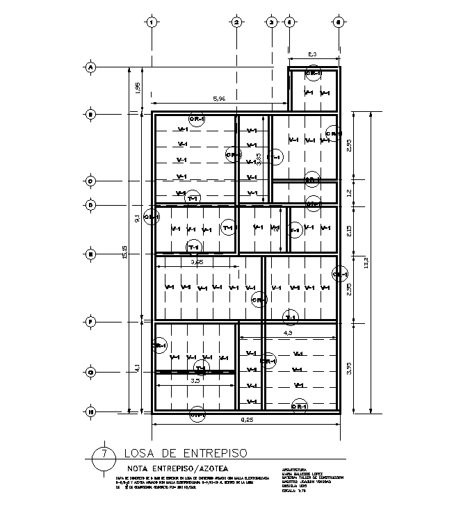 Beam layout of 8x17m ground floor house plan is given in this AutoCAD drawing model.Download now.