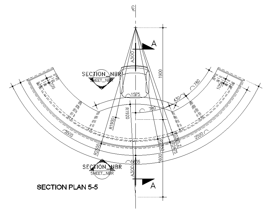 Section 5 to 5 view of Counter wall is given in this AutoCAD drawing model. Radius of the counter wall is given in this model. It is cantilever wall with counterforts. This is given for office purpose. This type of counter wall is used for office, hospital and university. 15mm thickness of tempered clear glass with polished stainless steel supporting devices is mentioned in this model. For more details download the AutoCAD drawing file. Thank you for downloading the AutoCAD drawing file and other CAD program files from our website.