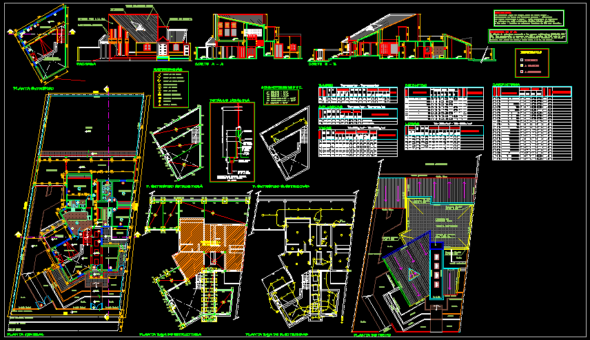 Modern House Design CAD Drawing with Electrical Plan and Elevations