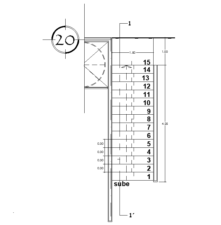Top view of 5x2.62m staircase plan is given in this AutoCAD drawing model. In this, 16 steps are available. The width of the staircase is 280mm. The depth of the riser is 150mm. Other details are given in this staircase plan. For more details download the AutoCAD drawing file. Thank you for downloading the AutoCAD drawing file and other CAD program files from our website.