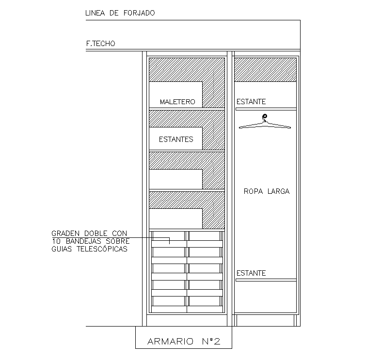 A section view of 2.4m height of the wardrobe plan is given in this AutoCAD drawing model.Download now.
