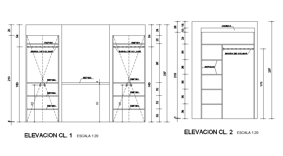 An elevation view of 2900x680mm closet is given in this AutoCAD drawing model. Total height of the closet is 2370mm. The closet is used to store the cloths. In this two different sizes of closets are given. For more details download the AutoCAD file. Thank you for downloading the AutoCAD file and other CAD program files from our website.