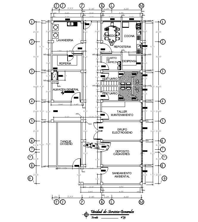 47x40m hospital plan of service room is given in this AutoCAD drawing model. Download now.