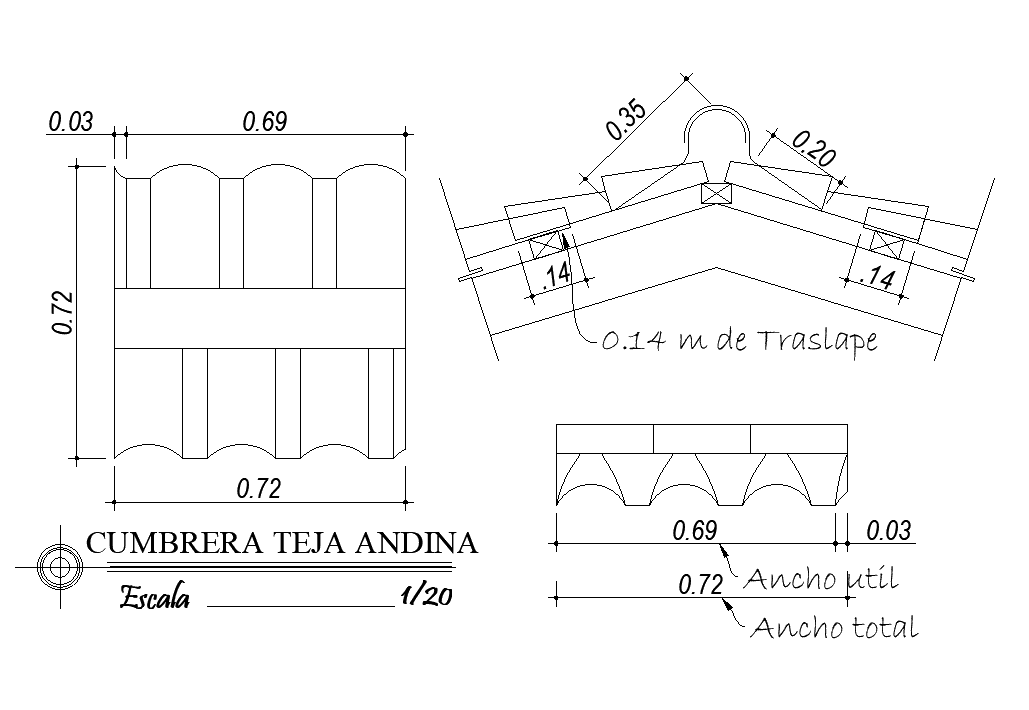 690x720mm roof sheet plan is given in this AutoCAD drawing model. Download now.