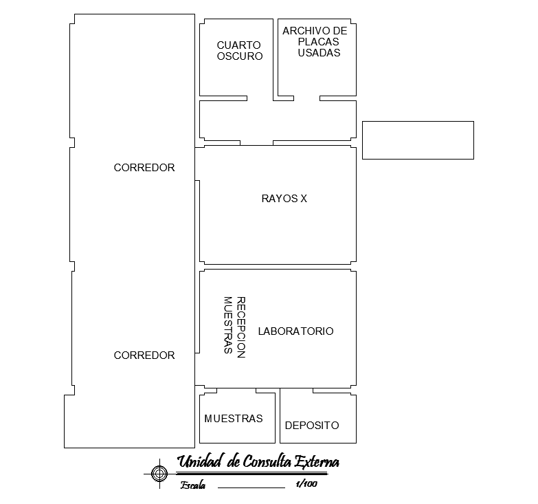 A layout of 47x40m hospital of diagnostic treatment room plan is given in this AutoCAD drawing model. Download now.