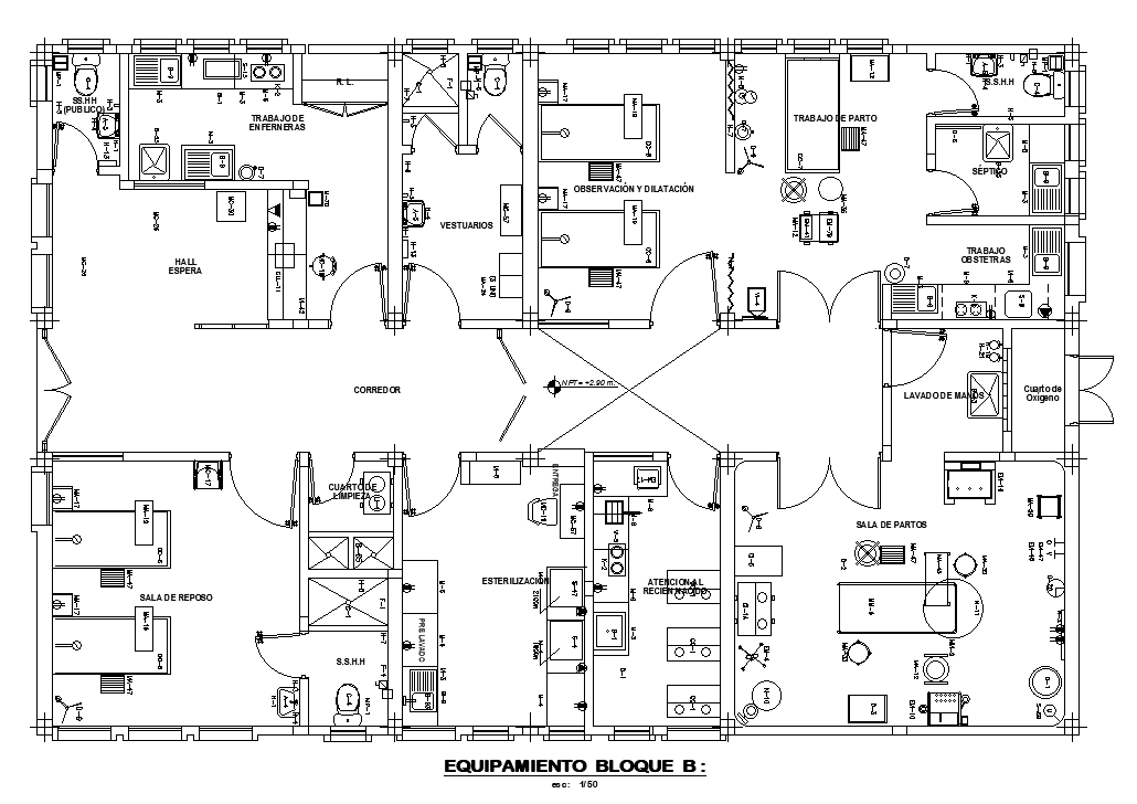 Equipment detail of 18x11m hospital obstetric center plan is given in this AutoCAD drawing model. This is single story hospital building. Labor, observation and dilation, sterilization, attention to the newborn, delivery room, gent’s toilet, ladies toilet and other details are available on this floor. For more details download the AutoCAD file. Thank you for downloading the AutoCAD file and other CAD program files from our website.