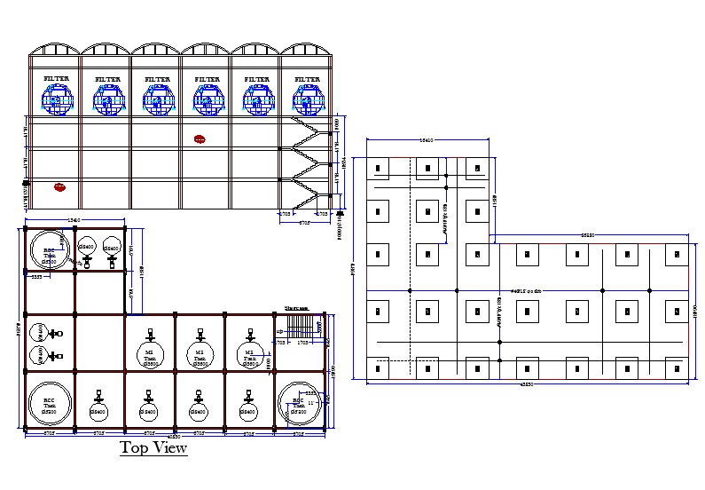 Autocad plup house drawings samples dwg, Top view, front view,side view, Raft For Bleaching House, plan lay-out detail.