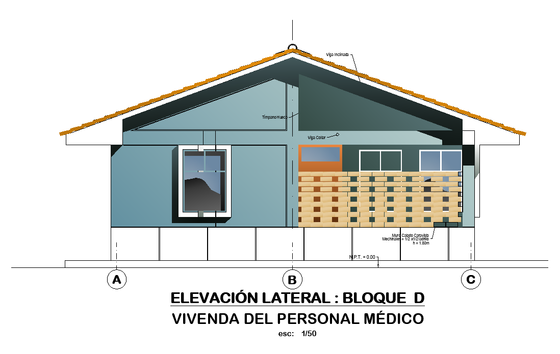 Back side elevation view of 8x8m house building is given in this AutoCAD drawing model. Download now.