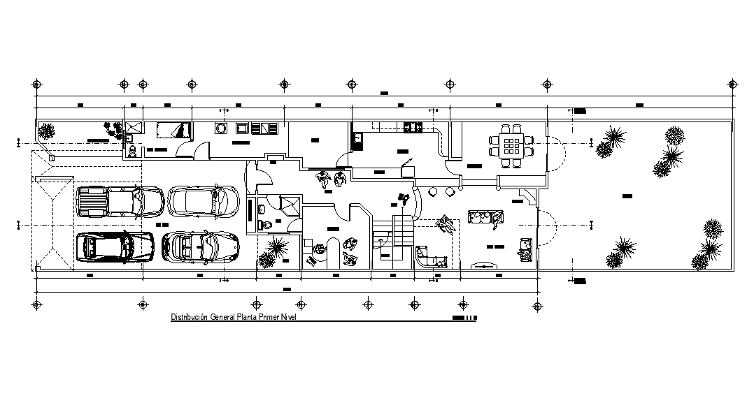 40x11m Ground Floor House Plan in AutoCAD Drawing Model
