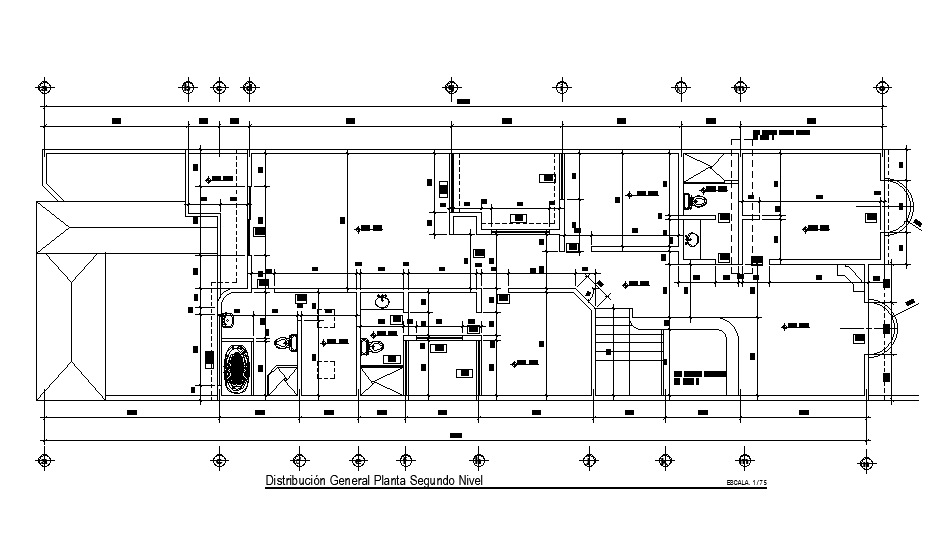 Dimension detail of 40x11m first floor of 40x11m house plan is given in this AutoCAD drawing model. Download now.