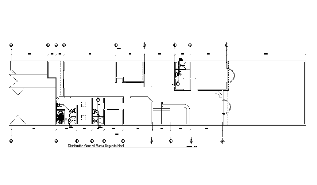 Sanitary layout of 40x11m first floor house plan is given in this AutoCAD drawing model.Download now.