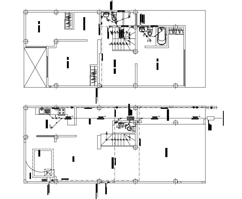 Plumbing layout of 16x7m house plan is given in this AutoCAD drawing model. This is G+ 1 house building. Car parking, kitchen, dining hall, passage, living hall, garden, and patios are available on the ground floor. Master bedroom with attached bathroom, guest room with dressing area, kid’s room, common bathroom, and family lounge area are available on the first floor.For more details download the AutoCAD file. Thank you for downloading the AutoCAD file and other CAD program files from our website.