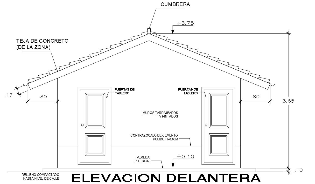 Front elevation view of 5x8m toilet building is given in this AutoCAD drawing model. Total height of the toilet building is 3.5m. Gent’s and ladies toilets are provided separately. For more details download the AutoCAD file. Thank you for downloading the AutoCAD file and other CAD program files from our website.