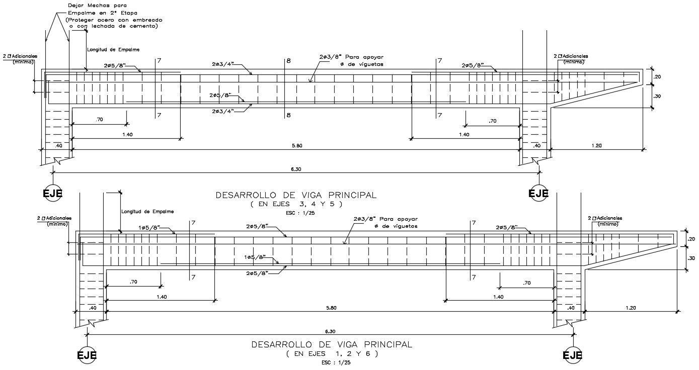 Longitudinal section view of 250x400mm beam is given in this AutoCAD model.Download the Autocad model.