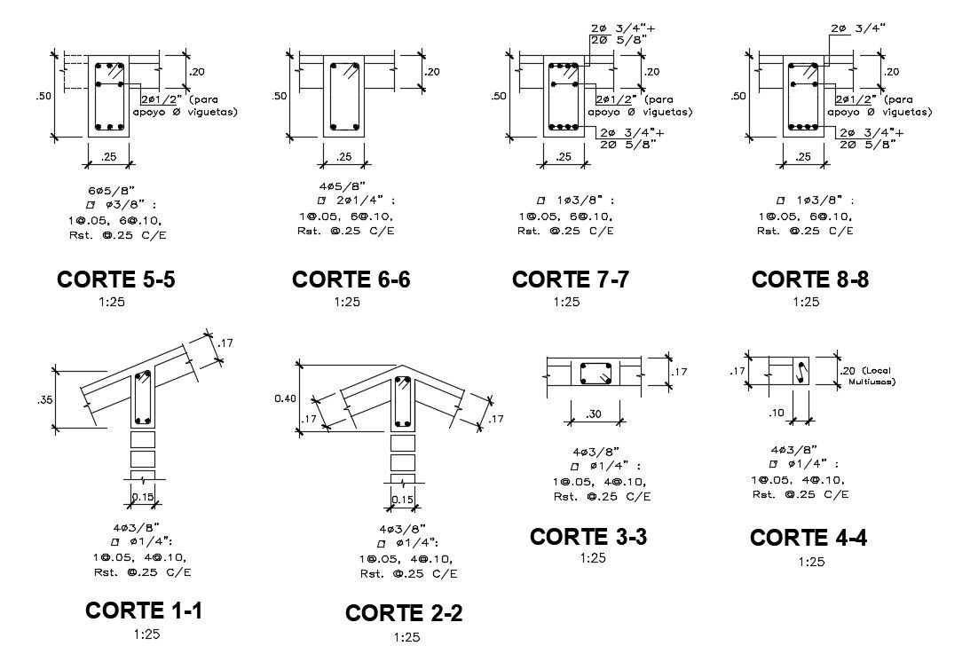 18x7m commercial plan of column section views are given in this AutoCAD model.Download now.