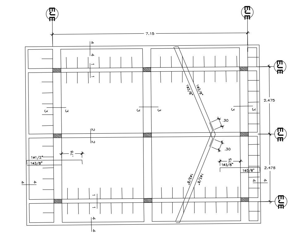 Column location detail of 8x5m toilet plan is given in this AutoCAD drawing model.Download now.