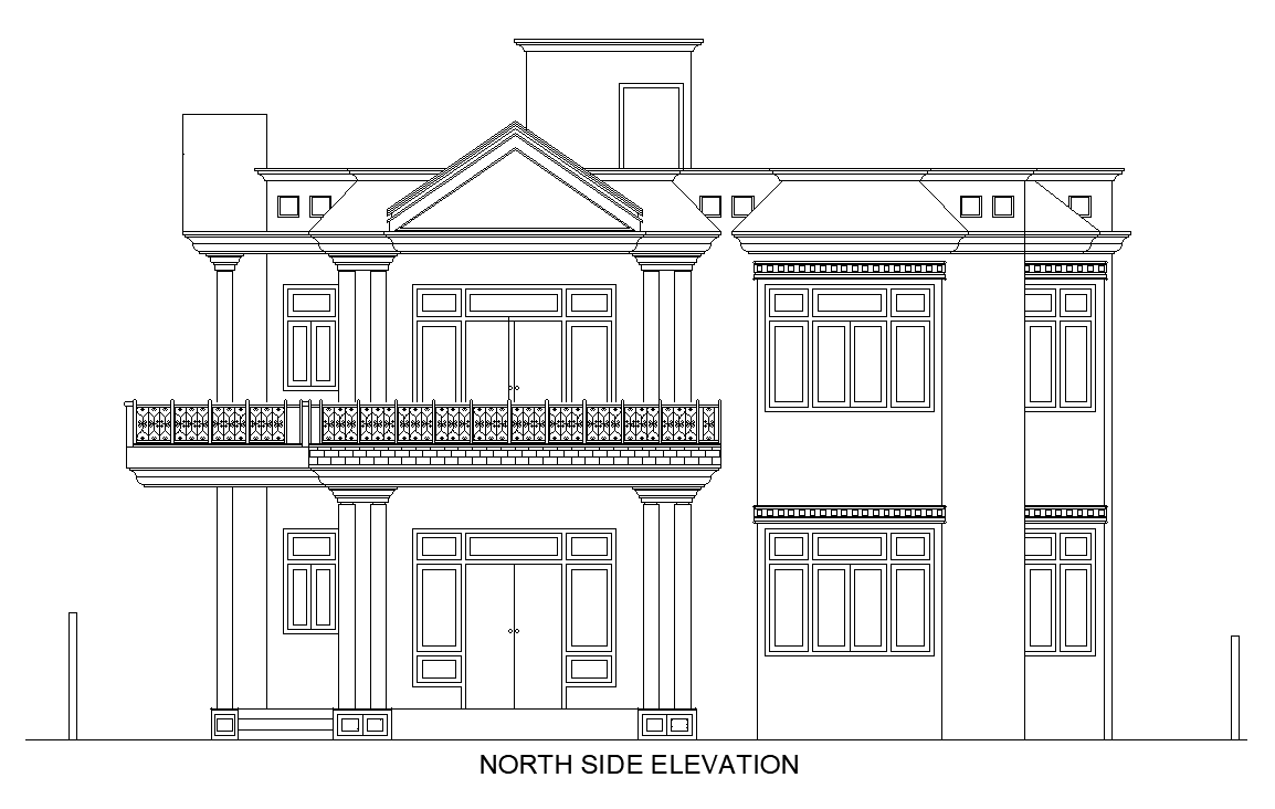 North side elevation view of 12x8m villa building is given in this AutoCAD drawing model. Download now.