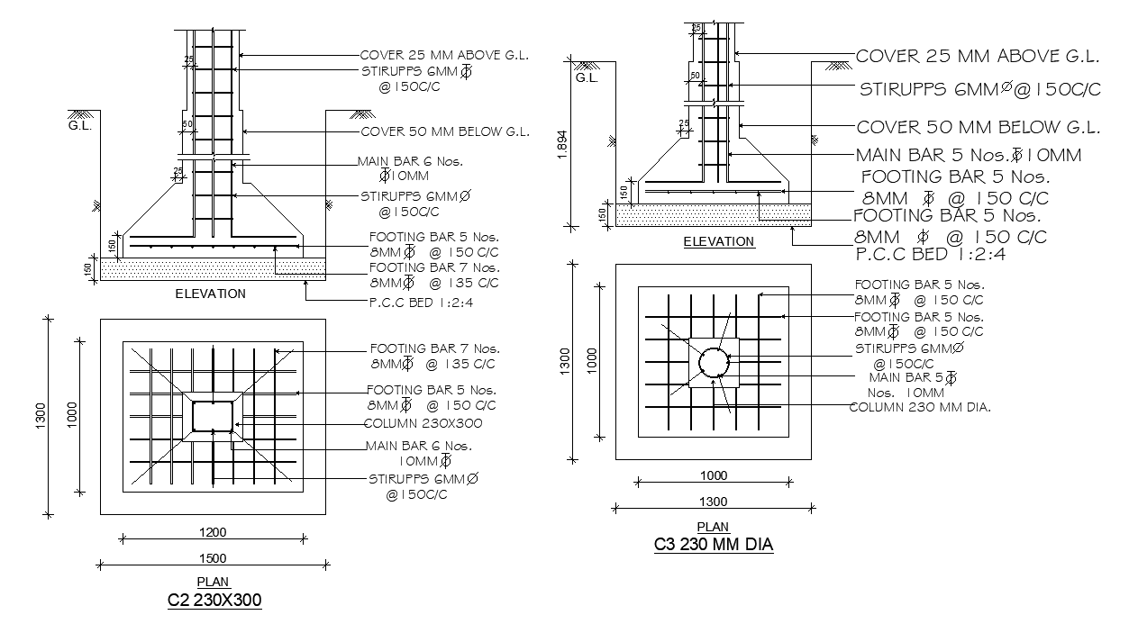 12x8m house plan of foundation cum layout detail drawing is given in this AutoCAD model. In this, two sizes of foundations are given. The dimension of foundation 1 & 2 is 1500x1300mm and 1300x1300mm respectively. For more details download the AutoCAD drawing file. Thank you for downloading the AutoCAD drawing file and other CAD program files from our website.