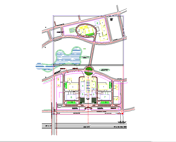 School building plans and designs, High school education university village center, 15.51ha area boundary construction limit, university sports village, experimental garden, etc detail.