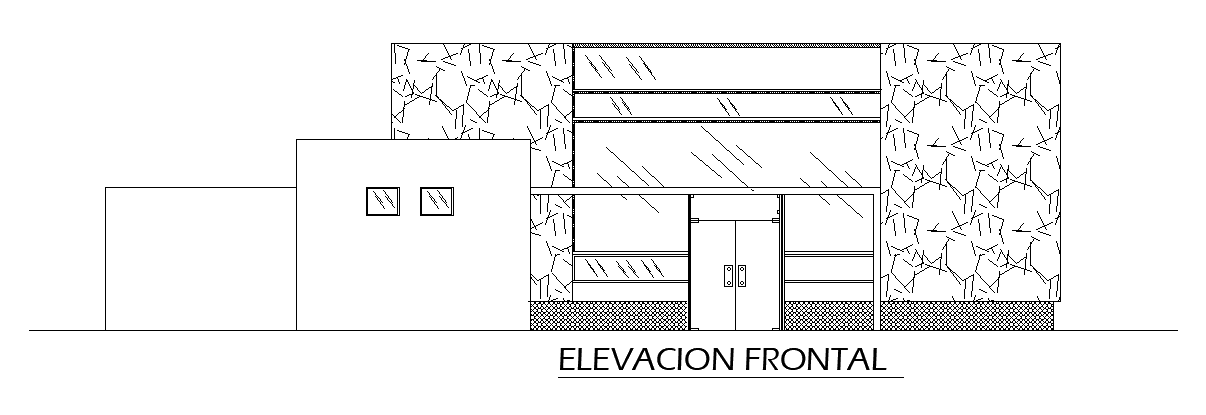 Front elevation view of 90x39m community center of auditorium is given in this AutoCAD model.Download now.