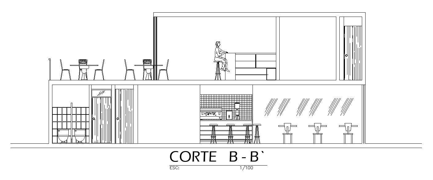Left side section view of 90x39m community center of cafeteria plan is given in this AutoCAD model. Download now.