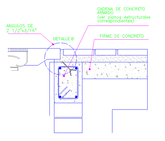 Firm concrete, Concrete chain armed, ANGULeS DE 2 1/2"x3/16", Steel detail in DWG File.