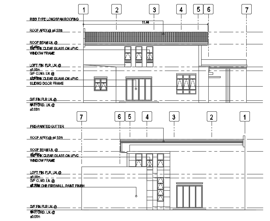 Left side elevation view of 15x12m house building is given in this AutoCAD model.Download now.