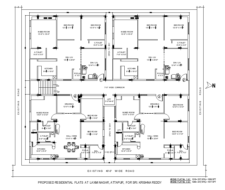 82’x74’ residential apartment plan is given in this AutoCAD drawing model. This is G+ 5 apartment building. In each floor, four houses are available. These houses are consists of kitchen, hall cum dining area, utility room, puja room, drawing room, master bedroom with attached toilet, guest room, kid’s room, and common bathroom are available. For more details download the AutoCAD drawing file. Thank you for downloading the AutoCAD drawing file and other CAD program files from our website.
