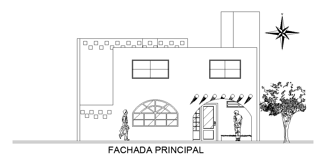 The front elevation view of 21x10m house building is given in this AutoCAD DWG file. Download now.