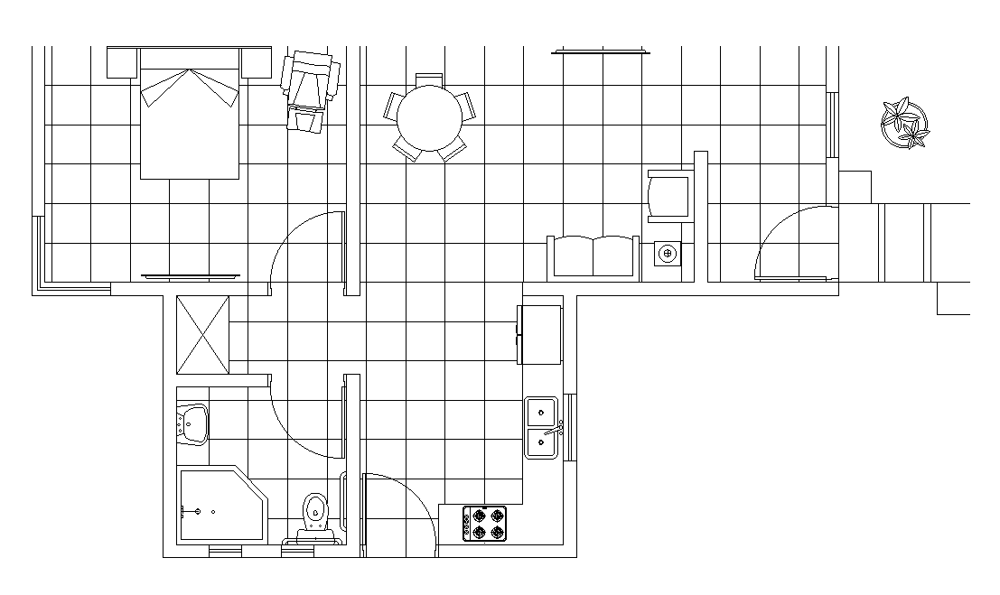 14x8m 1BHK house plan is given in this AutoCAD drawing model. Download now.