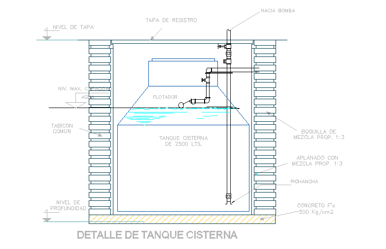 Nozzle MIX PROP. 1: 3, Tank tank Of 2500 lts., level of depth, Main Hole cover, Niv Max. capacity etc detail include the autocad file.
