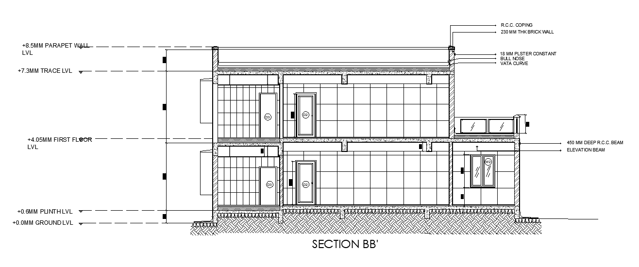 Left side section view of 13x15m residential house is given in this AutoCAD model. Download now.