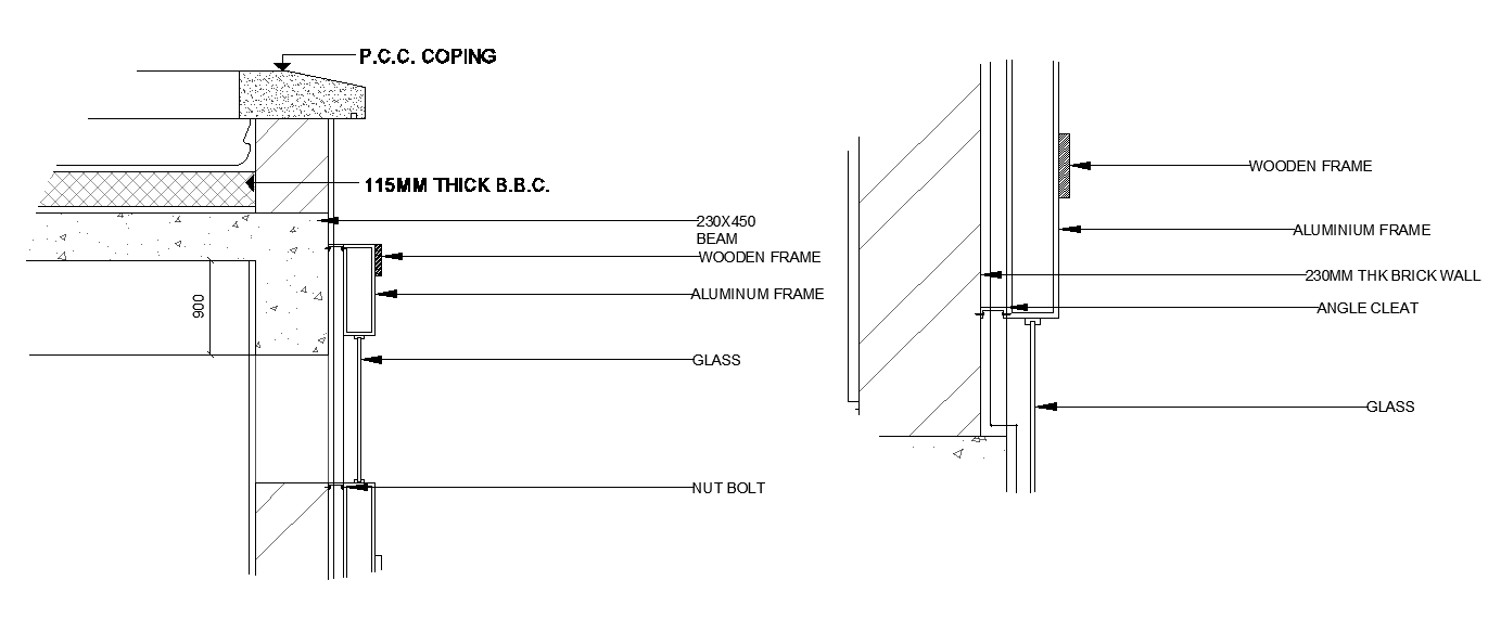 13x15m house plan of window layout is given in this AutoCAD model. 230x450mm beam is visible in this model. Wooden frame, aluminum frame, glass, nut bolt, and angle cleat are mentioned in this section view. For more details download the AutoCAD drawing file. Thank you for downloading the AutoCAD drawing file and other CAD program files from our website.