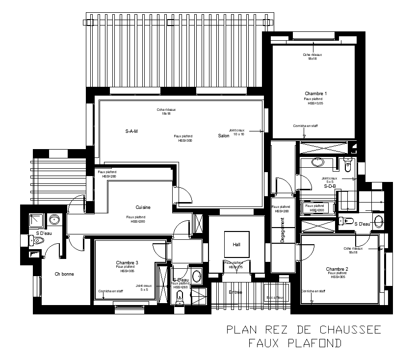 3 Bedroom House Apartment Layout plan AutoCAD Drawing DWG File
