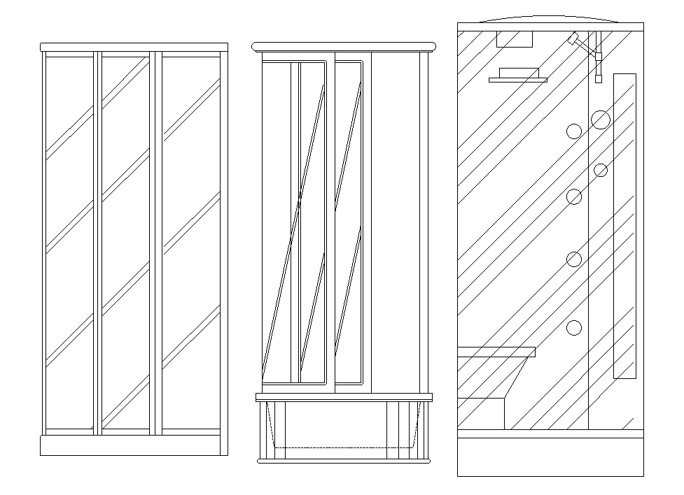 2D design shower section view is given in this AutoCAD model. In this, three types of shower looks are given. Other details are given in this plan. For more details download the AutoCAD drawing file. Thank you for downloading the AutoCAD drawing file and other CAD program files from our website.
