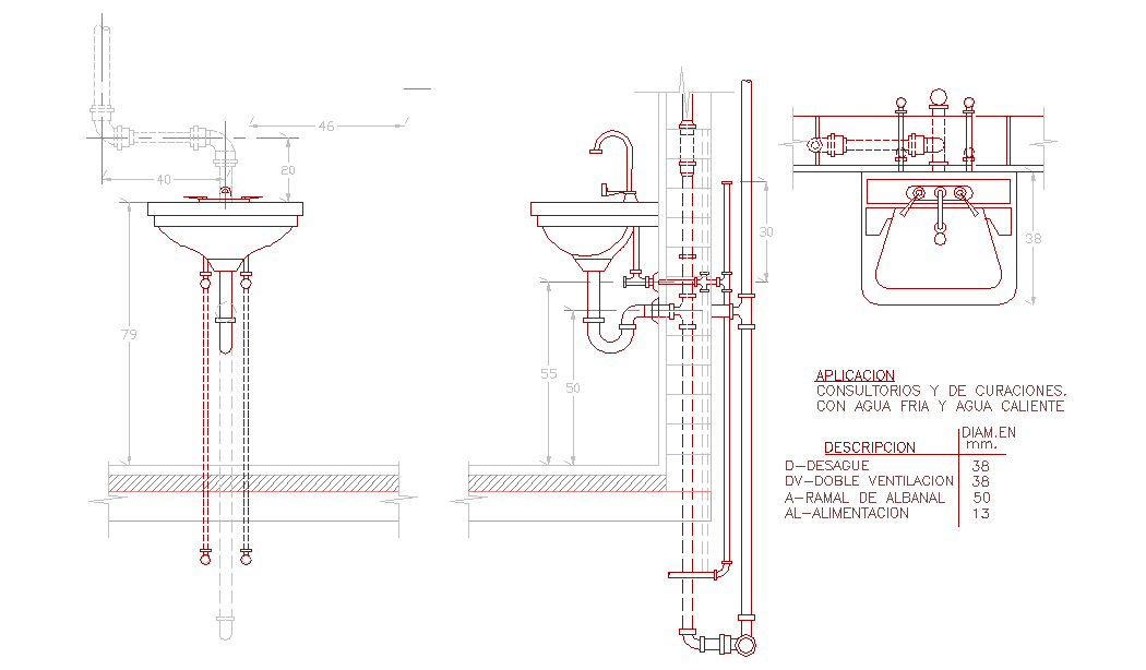 Offices and healing With cold water and hot water, Drainage, Double ventilation, feeding detail & plan top view design, elevation detail, plumbing detail, etc detail include the file.
