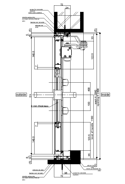 Transverse section view of 900x2400mm door is given in this AutoCAD drawing model. Download now.