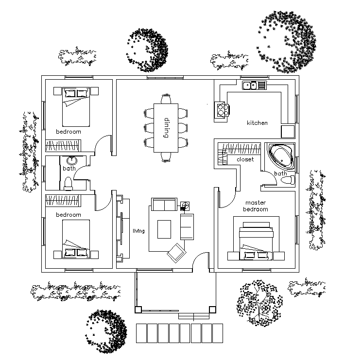 Furniture’s layout of 46’x38’ residential house plan is given in this AutoCAD drawing model. This is single story residential building. Living room, dining hall, master bedroom with attached closet, & bath tub, kid’s room, kitchen, guest room, and common bathroom are available. For more details download the AutoCAD drawing file. Thank you for downloading the AutoCAD drawing file and other CAD program files from our website.