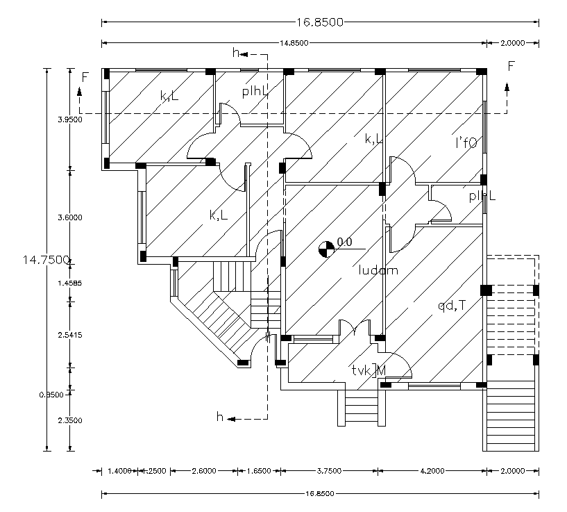 Column layout of 16x16m house is given in this AutoCAD drawing model.Download now.