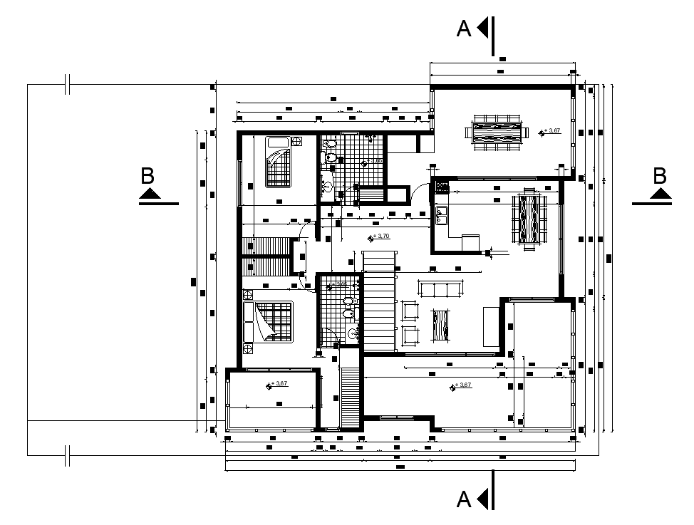 14x14m ground floor duplex house plan is given in this AutoCAD drawing model. Download now.