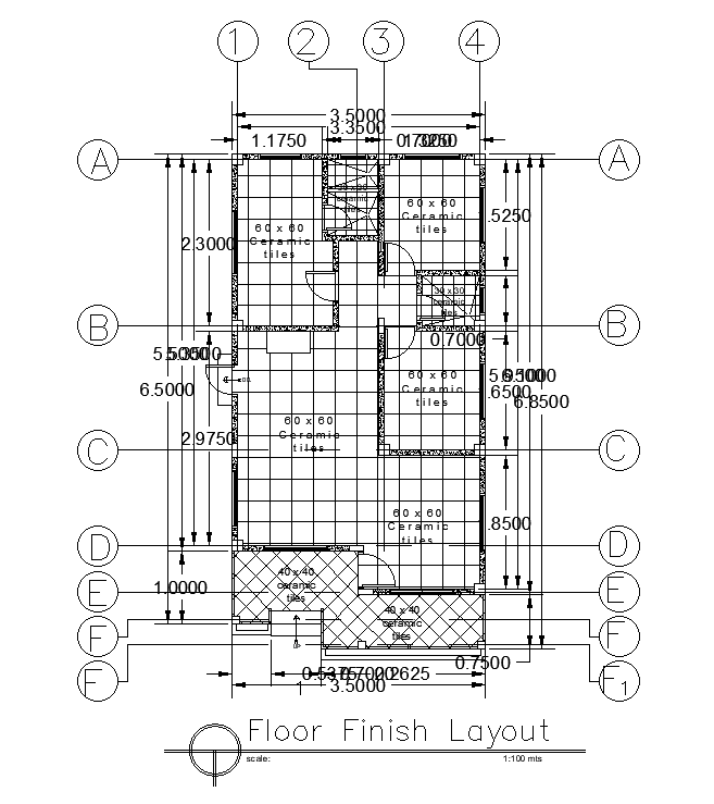 Floor finish layout of 7x13m residential house plan is given in this AutoCAD drawing model. Download now.