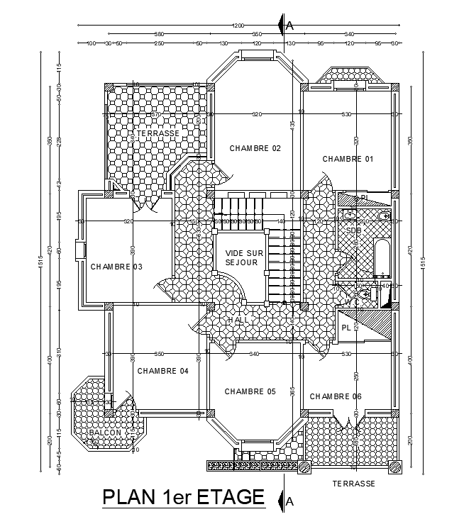 11x14m first floor villa plan is given in this AutoCAD drawing model. Download now.