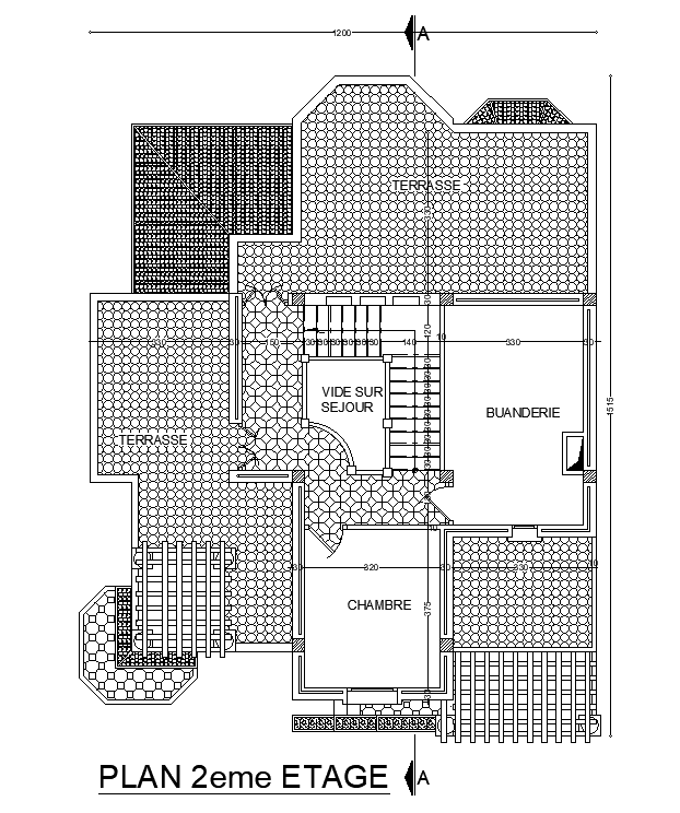 11x14m second floor villa plan is given in this AutoCAD drawing model. Download now.
