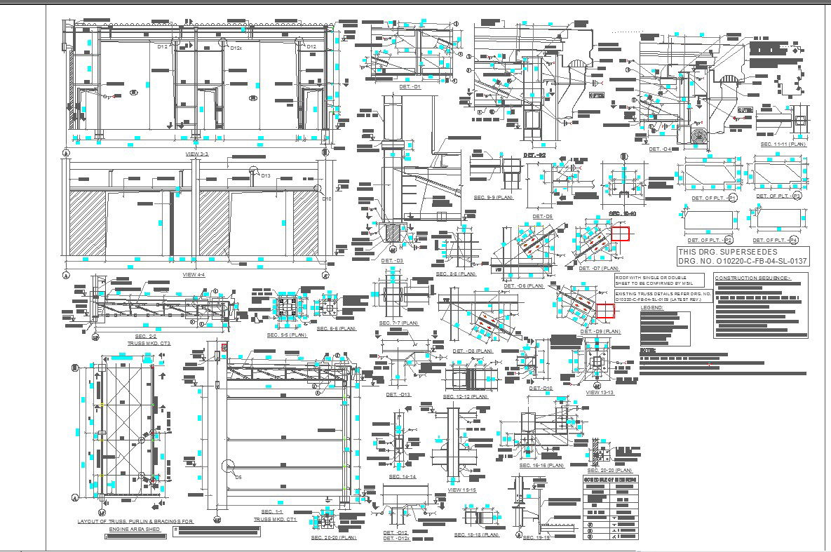 Details of the typical construction of canopy autocad dwg files. inlcude plan, sections and elevations.
