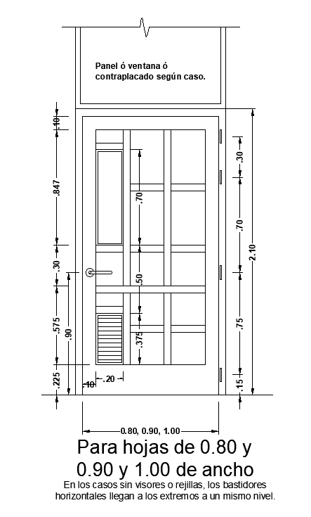 2100x800mm door structure is given in this AutoCAD drawing model. Download now.