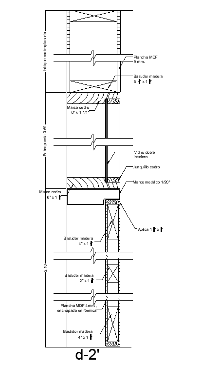 Longitudinal section view of the 2100x1500mm door structure is given in this AutoCAD drawing model.Download now.