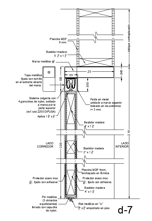 2100mm height of the door section view is given in this AutoCAD model. This is single door design. Locking details are given in this model. Other details are given on this section view. For more details download the AutoCAD drawing file. Thank you for downloading the AutoCAD drawing file and other CAD program files from our website.